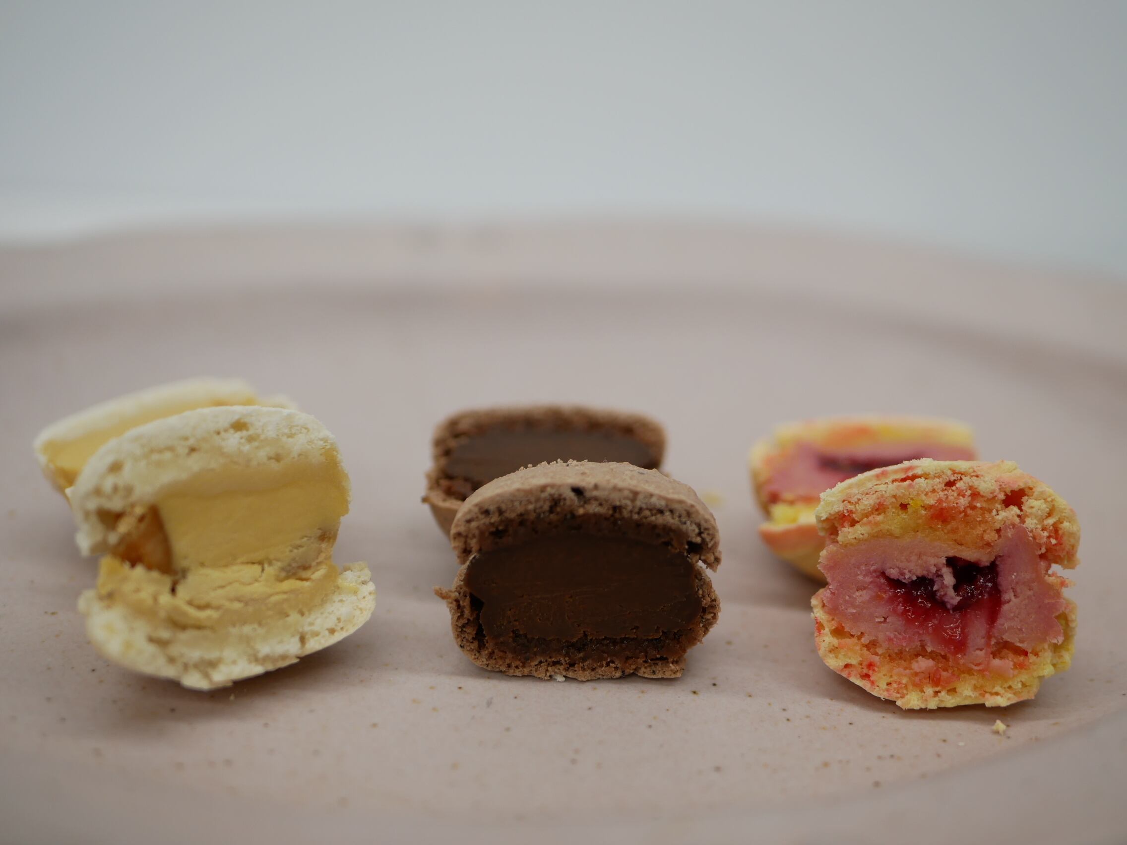 ラズベリーと混ぜて甘酸っぱくほのかに香るマカロンにしてみました。